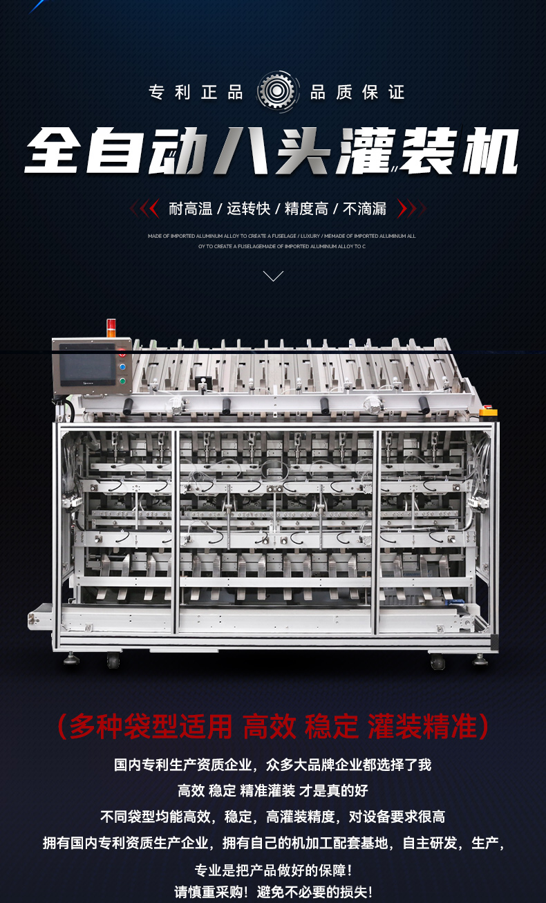 3,更為重要的環節,一定要選擇“磁力泵”灌裝的。是不是“磁力泵”直接影響到使用成本,不要選用普通氣缸進行灌裝,因為全自動面膜灌裝機一般是兩個或是兩個以上的灌裝頭,普通氣缸型的全自動面膜灌裝機是由一個氣缸控制所有灌裝頭,一旦氣缸有問題就是整機癱瘓,而裝“磁力泵”的面膜灌裝機是一個磁力泵控制一個灌裝頭,不論是任何一個或是兩個,甚至三個以上出現故障時都不會影響到其他灌裝頭的使用。這就不會出現一點小故障而停產的現象,磁力泵還有一個優點就是相對而言它的灌裝更加準確以及衛生更好些。氣缸則是需要打油的這樣一來在生產過程中就難免會掉入到精華液當中。在灌裝一些上等精華液時顯得尤為重要了,那么為什么面膜灌裝機有普通氣缸與磁力泵之分呢,主要是因為這不是換個氣缸那么簡單的,而是要掌握磁力泵技術是有一定的難度。