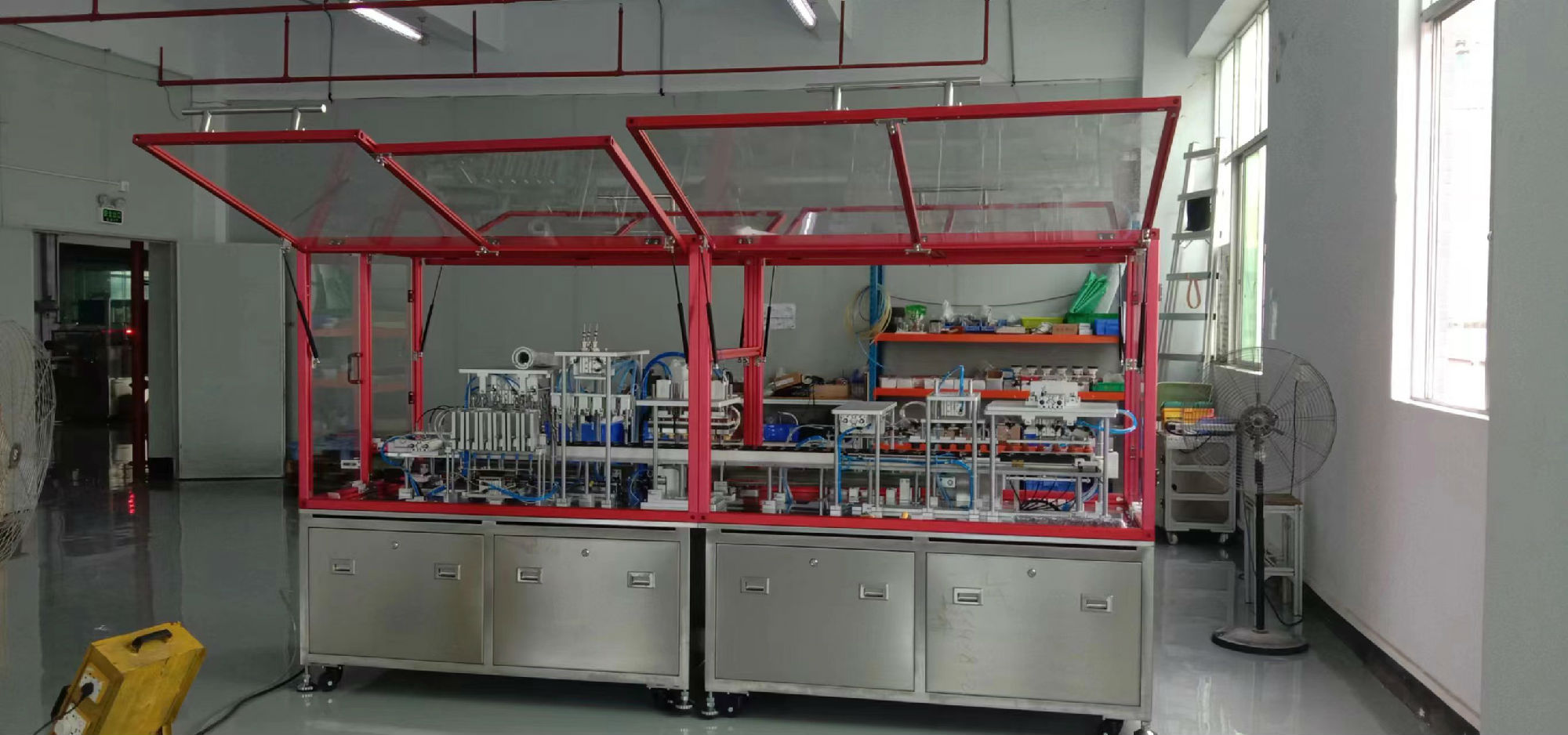 (6)設(shè)備做成分段式的,方便運(yùn)輸,運(yùn)至甲方車(chē)間再組裝(甲方貨梯尺寸為:深2.58米寬2.2米高2.2米)